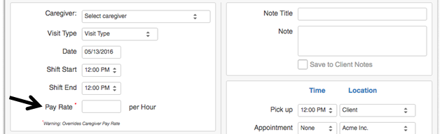 If you need to set a special caregiver rate for a specific visit with a specific client, you can now do that through the Schedule Manager. It only overrides the normal caregiver rate for that specific visit that you are scheduling. To make use of this feature, simply schedule a caregiver like you would normally in the Schedule Manager section of Savii Care and enter the specific caregiver rate you would like for that visit in the new "Pay Rate" box provided. You do not need to enter anything in this box if the normal pay rate applies to the visit you are scheduling, however.
